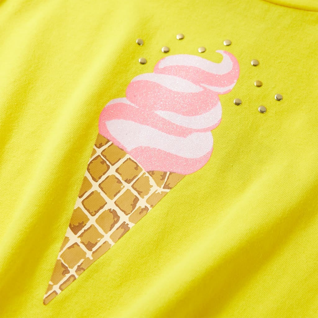 Our children's clothing collection focuses on affordable, high-quality, and durable everyday wear for children aged 1.5 to 10 years. Our range includes jackets, sweaters, shirts, and much more, with a variety of styles, sizes, and colors. This children's T-shirt has short sleeves, a crew neck, and a straight fit. It features an ice cream design. Made from 95% cotton, this short-sleeved shirt feels soft and comfortable against the skin. Finding the right size for your child is easy.